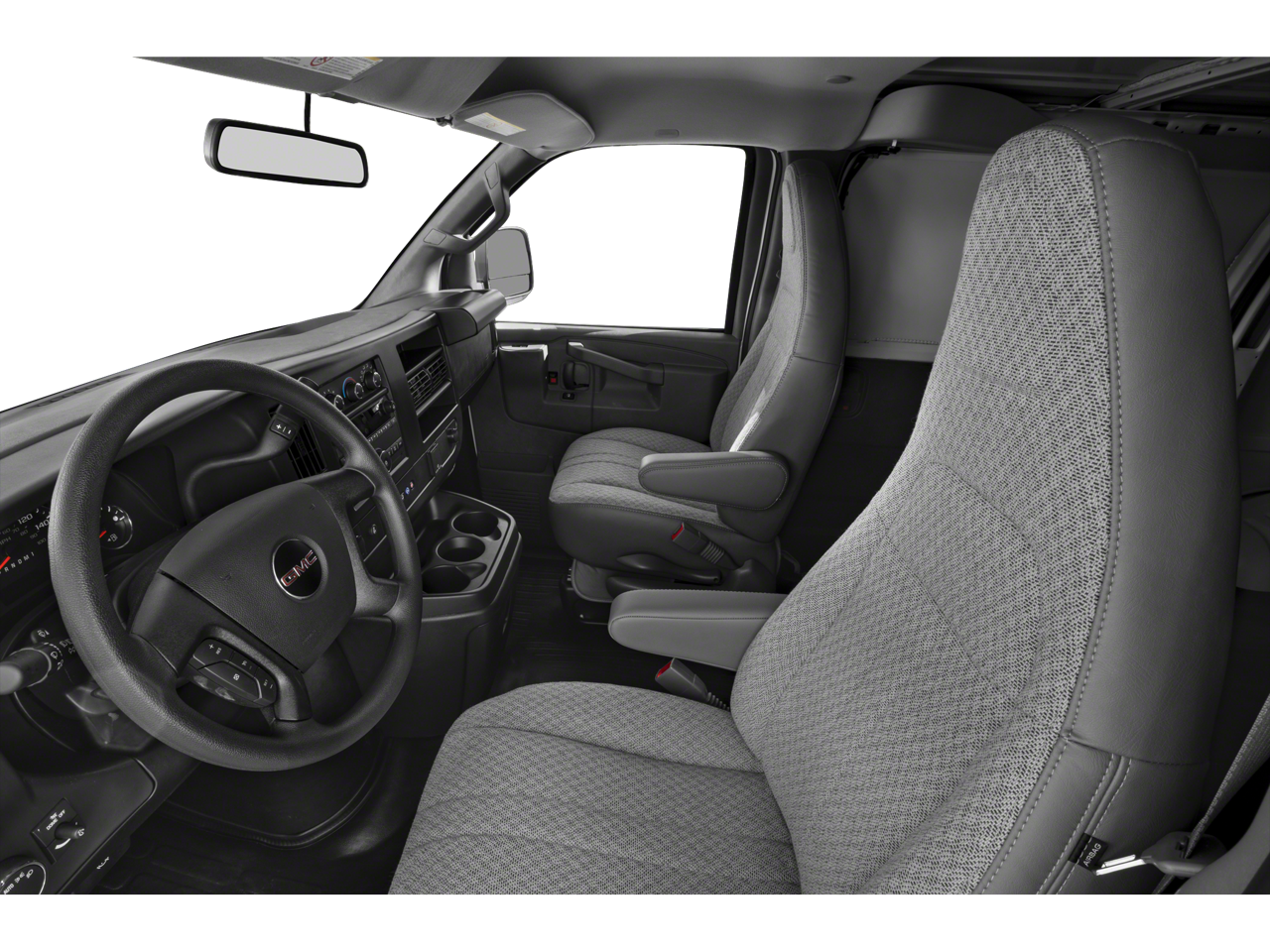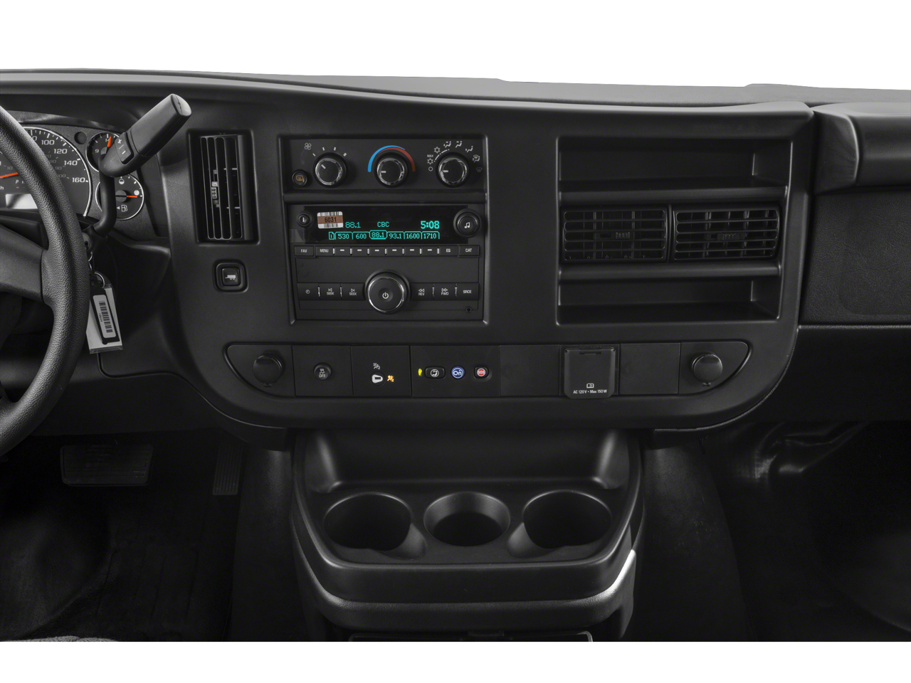 Step inside the Savana 2500 and experience the comfort and convenience of the well-appointed interior. The cloth/vinyl seat trim and front bucket seats with inboard armrests offer exceptional support, while the swing-out storage bin in the console provides ample space to keep your essentials organized. With single-zone manual air conditioning, you can maintain a comfortable cabin temperature, no matter the weather.